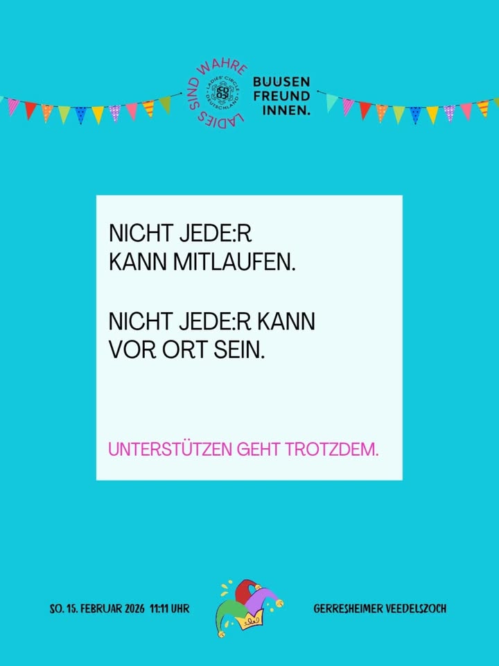 Und genau das tragen wir am Sonntag im Veedel.